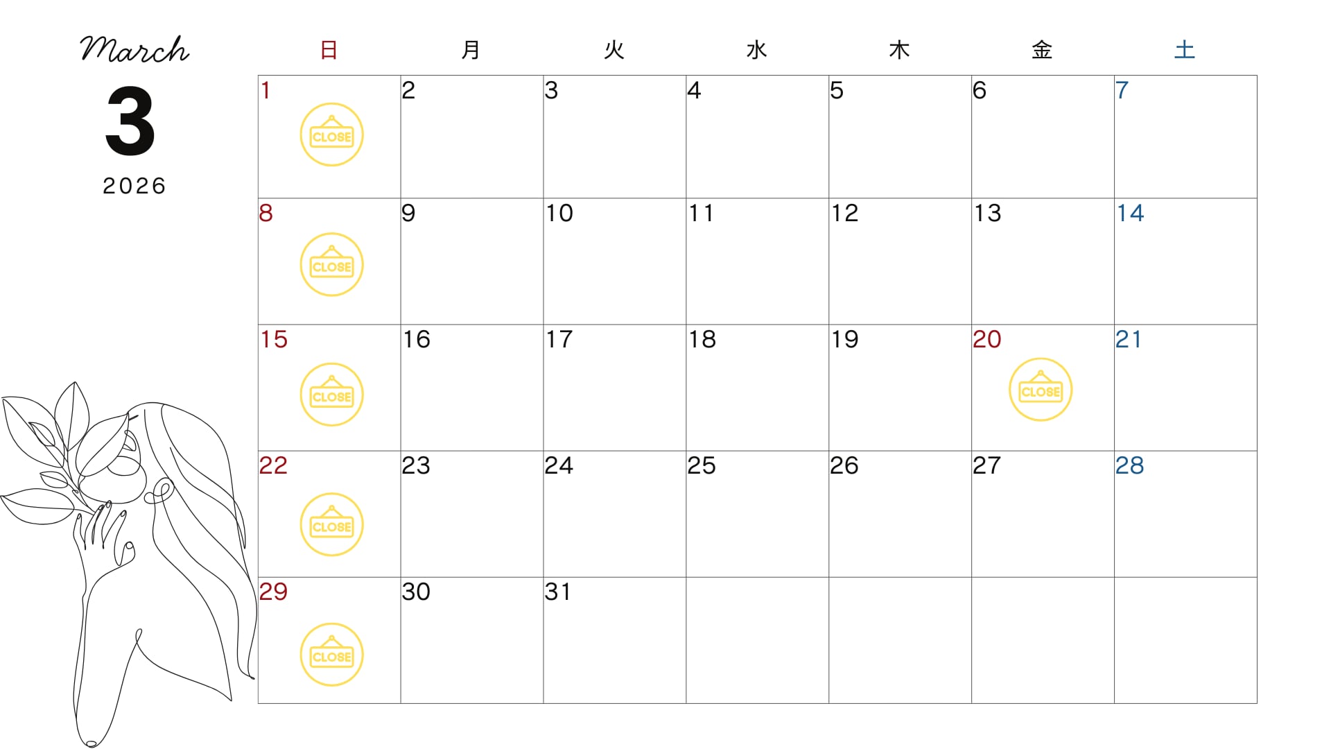 3月定休日のご案内